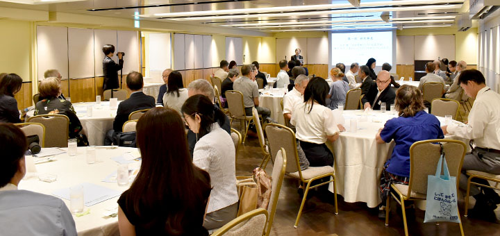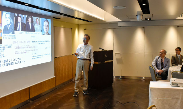 博士号取得支援事業の第2回研究発表会は、2025年9月21日、東京・銀座の三笠会館にて開催されました。第1回に続きMCを務めてくださったのは、2013年度支援合格者で博士号取得者の一人・峯村雅子さん。「社会人の博士号取得は自分ひとりで成し遂げられるものではありません。大学院の教官や共同研究者、職場の人たち。さらには、家族の理解・協力があってこそです。周りの方への感謝とさらなるご理解をいただきたい、そういう意味も含めて、本日は何人かの方には家族と一緒にご参加いただいております」と、挨拶の中で趣旨を述べました。